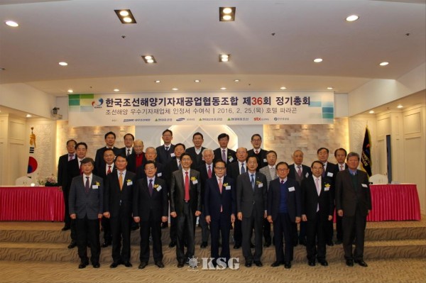 이번 총회에서는 경기 침체 속에서도 산업계 발전에 기여한 기관 및 기업에 대한 수상이 진행됐다. 산업통상자원부 장관표창에 스카나코리아하이드로릭(주) 최귀수 전무이사, 지·피·씨 우진영 이사 등이 수상했다. 이밖에 국내 조선해양기자재 산업의 경쟁력 제고를 위한 공로로 대우조선해양, 현대중공업, 한국선급에 업계를 대표해 감사패를 수여했다.