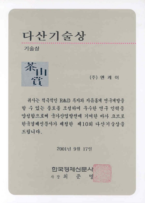 20010917-다산기술상 페이지 정보 작성자 최고관리자 작성일16-08-18 13:13 조회4회 댓글0건 관련링크 이전글 다음글 목록 답변 글쓰기 본문 수상(20010917)_다산기술상,회사 댓글목록 등록된 댓글이 없습니다. 이전글 다음글 목록 답변 글쓰기
