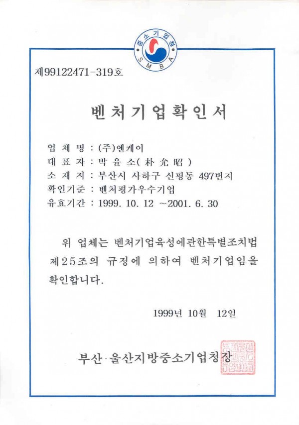 19991012-벤처기업확인서 페이지 정보 작성자 최고관리자 작성일16-08-18 14:04 조회5회 댓글0건 관련링크 이전글 다음글 목록 답변 글쓰기 본문 벤처기업확인서-NK(19991012) 댓글목록 등록된 댓글이 없습니다. 이전글 다음글 목록 답변 글쓰기