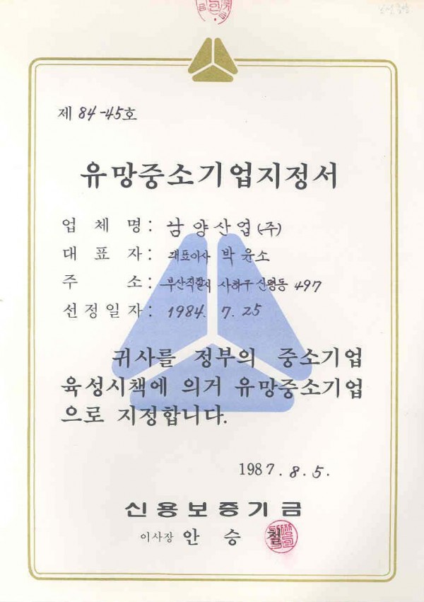 19870805-유망중소기업 지정서 페이지 정보 작성자 최고관리자 작성일16-08-18 14:06 조회6회 댓글0건 관련링크 이전글 다음글 목록 답변 글쓰기 본문 유망중소기업 지정서-NK,신보(19870805) 댓글목록 등록된 댓글이 없습니다. 이전글 다음글 목록 답변 글쓰기