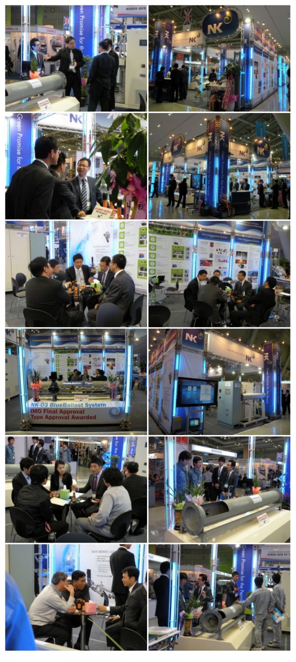 세계 유수의 30여 회사 관계사가 내방하여 당사 신규 제품인 밸러스트수 처리장치 상담을 가졌습니다. 또한 국내 조선소 10여 곳과 중국, 일본, 대만, 인도 등 세계여러나라 조선소 20여 곳, 설계 디자인 업체, 대리점, 선박관련 무역회사 등 80여 회사 관계자가 당사 부스를 방문하였습니다.